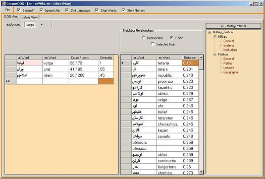 CorpusDOG can operate in a bi-lingual mode as this